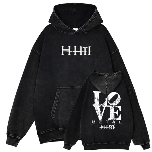 Men's Winter Streetwear Hoodie Harajuku Washed Cotton Oversized Hoodie Retro Band Pattern DTG Printed Warm Top