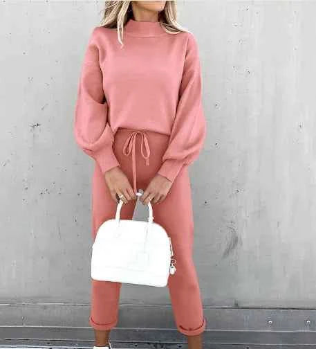 Women Two Piece Tracksuit Set With Jacket And Sweatshirt Pocket Drawstring Long Pants Thick Casual Office Wear For Autumn