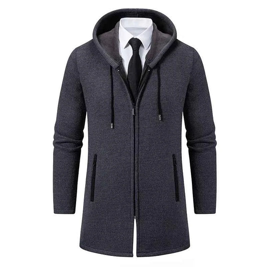 Mens Winter Padded Jacket Thick Fleece Long Coat Hooded Zipper Cardigan Overcoat For Cold Weather
