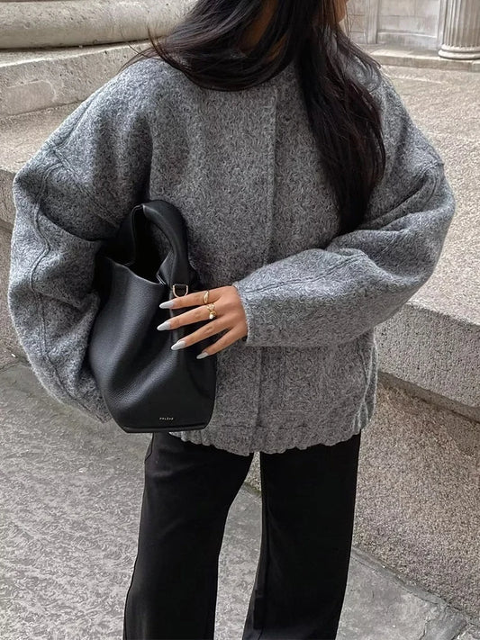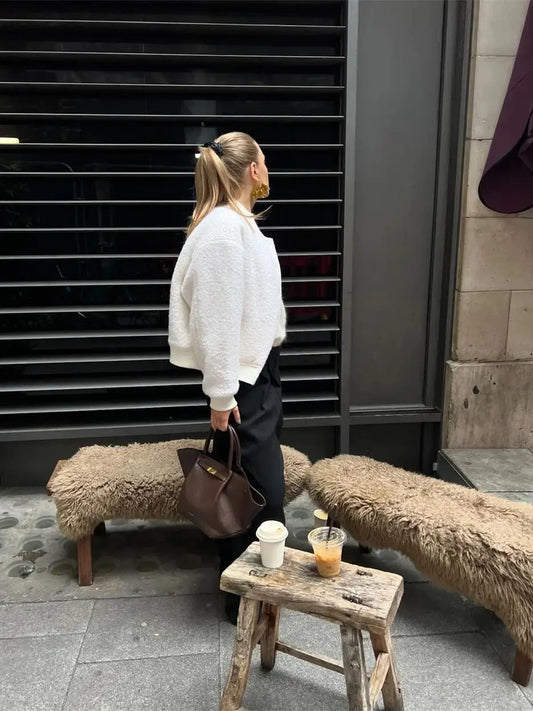 Women's Soft Tweed Woolen Bomber Jacket Cozy Versatile Outerwear For Everyday Style