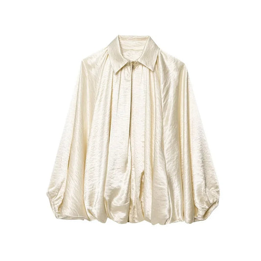 Women's Ruched Puffy Oversized Bomber Jacket Available in Sizes S M L Trendy Casual Outerwear for Everyday Style