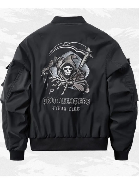 God of Death Bomber Jacket Chest Pocket Techwear for Men Oversized MA1 Coats Tactical Streetwear Black Varsity Jackets
