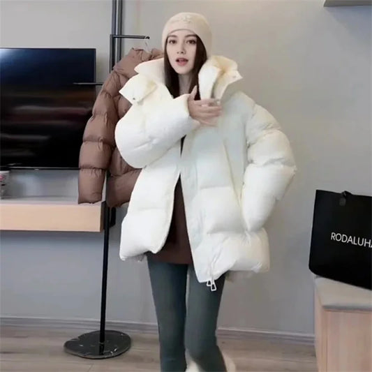 Women Oversized Hooded Parka Thick Winter Coat Outerwear Warm Soft Kawaii Style Long Sleeve Bomber Jacket