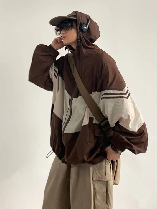 Women Harajuku Patchwork Cargo Bomber Jacket Streetwear Oversized Fit Available In Sizes M To XXL